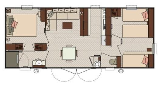 Esta Casa Móvel T3 IRM HAMPTON RESIDENTIAL não é apenas um mobilhome funcional, mas também confortável, com três quartos espaçosos. O quarto principal é uma suíte master, com acesso direto ao banheiro, proporcionando a privacidade e o conforto que você precisa. Além da suíte, os outros dois quartos são igualmente confortáveis e espaçosos, adequados para crianças ou hóspedes. Todos os quartos têm acesso direto ao banheiro, facilitando a distribuição e o uso prático da residência.