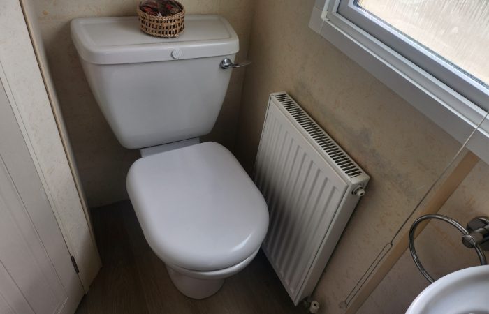 A casa conta com uma casa de banho pública equipada com chuveiro e WC, além de um segundo WC separado, garantindo maior privacidade e conforto para todos os moradores.