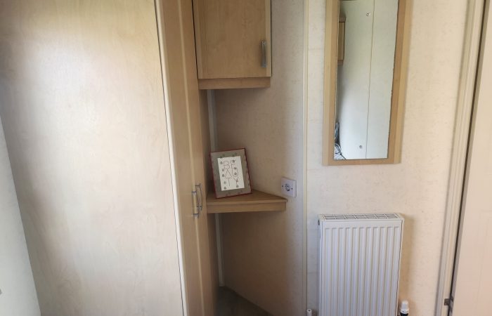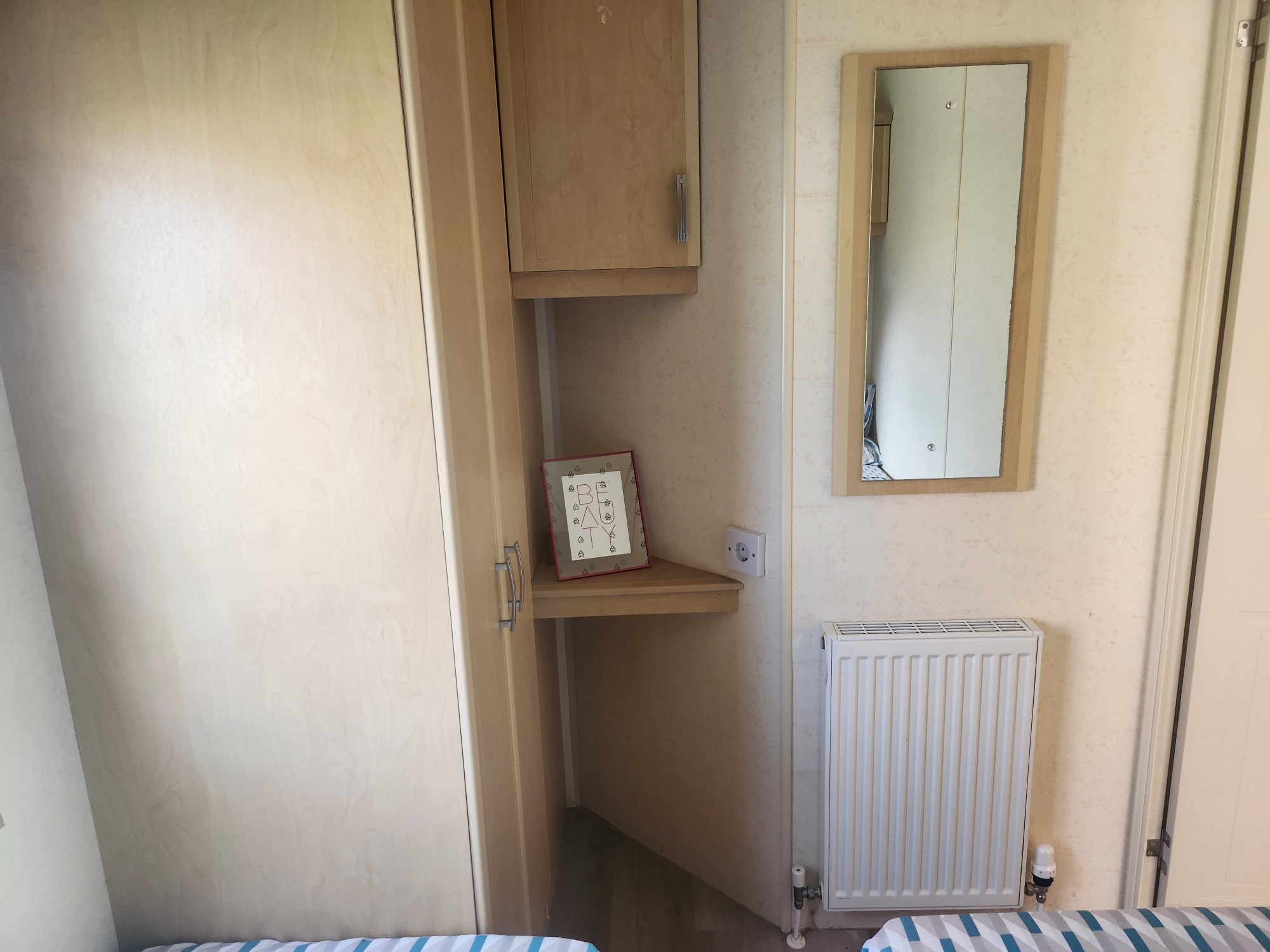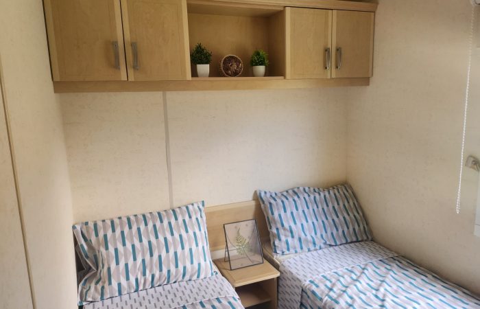 A Casa pré-fabricada T2 Atlas 10,5 m x 3,8 m (39,9 m²) conta com dois quartos espaçosos. O quarto de casal possui um grande espaço para roupeiro, garantindo amplo espaço para arrumação e um bengaleiro para facilitar a organização. O segundo quarto twin também é equipado com seu próprio roupeiro e espaço de arrumação, proporcionando conforto e praticidade para os ocupantes.