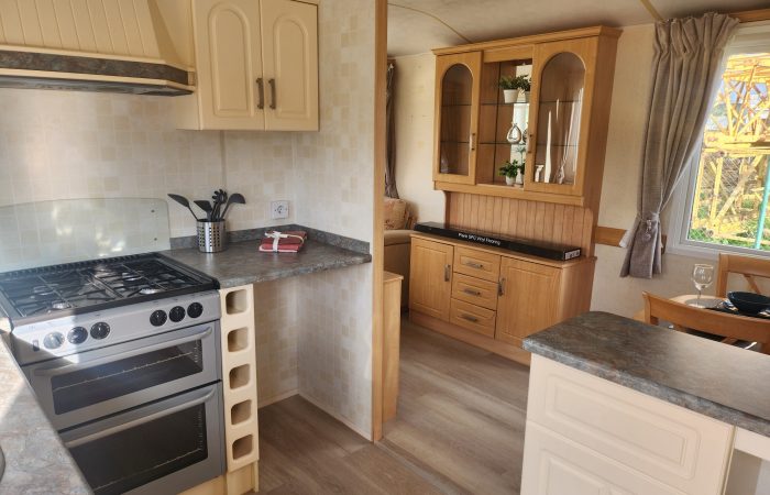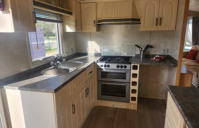 A cozinha em plano aberto é uma das características mais notáveis da Casa pré-fabricada T2 Atlas 10,5 m x 3,8 m (39,9 m²). Ela possui um fogão a gás de tamanho normal com 4 bocas, oferecendo bastante espaço para preparar refeições. Além disso, há espaço para frigorífico/congelador e amplo espaço de arrumação, permitindo uma organização eficiente e prática na cozinha.