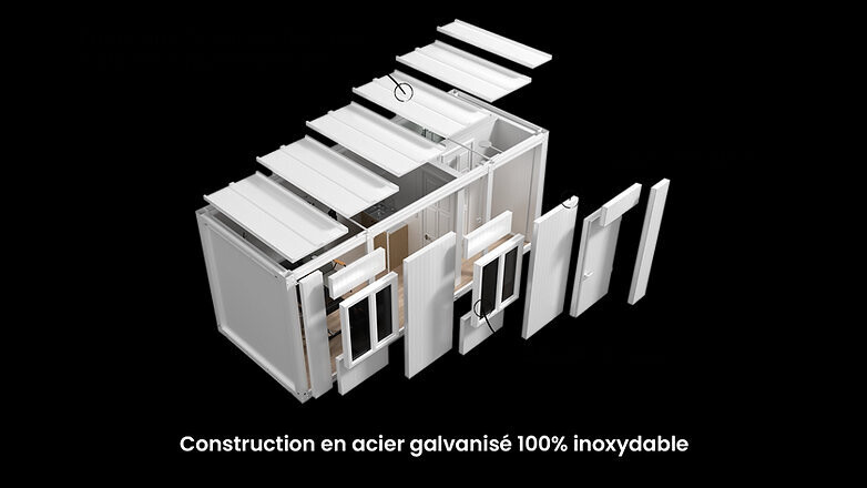 Para garantir o conforto em qualquer estação do ano, o Contêiner de 20 pés transformado em escritório possui um isolamento eficiente. As paredes têm 50 mm de espessura e o teto tem 80 mm, criando um ambiente com temperatura controlada, ideal para trabalhar ou relaxar sem preocupações com o clima externo. Isso também ajuda a reduzir o consumo de energia, tornando o espaço mais sustentável e econômico.